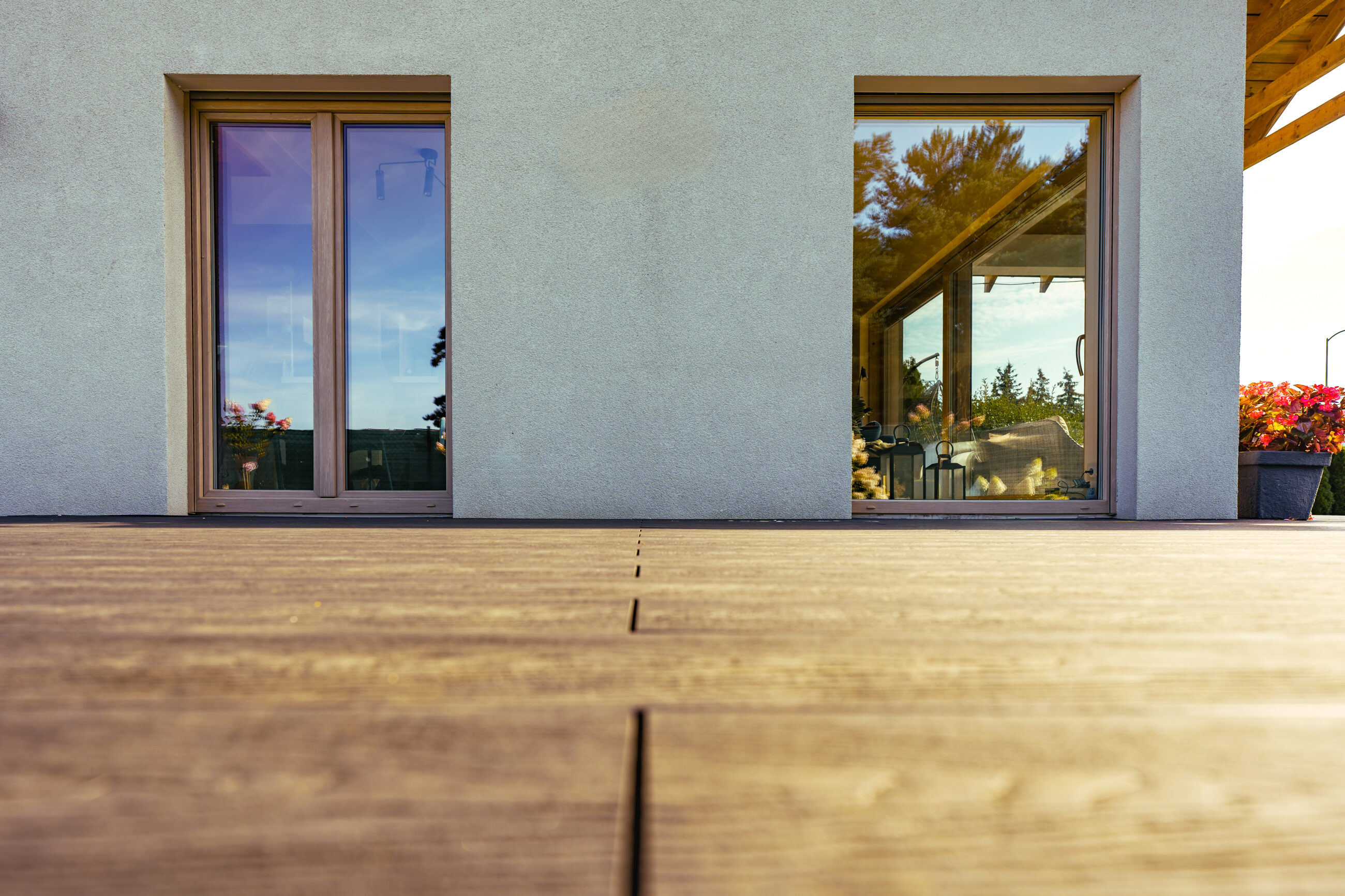 Bicolor windows can also harmonize with other materials used on the building’s exterior and interior. For example: